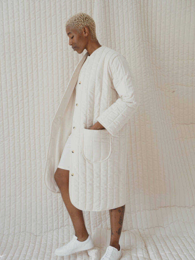 Long Quilted Jacket Cream Photo Sample